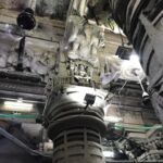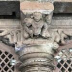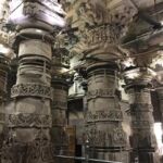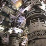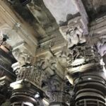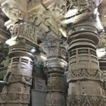 42 स्तम्भों पर आधारित विशाल महामण्डप, बहुअलंकृत स्तम्भ विशाल कीर्तिमुख उनके ऊपर सांकल व घण्टिकाओं का अंकन